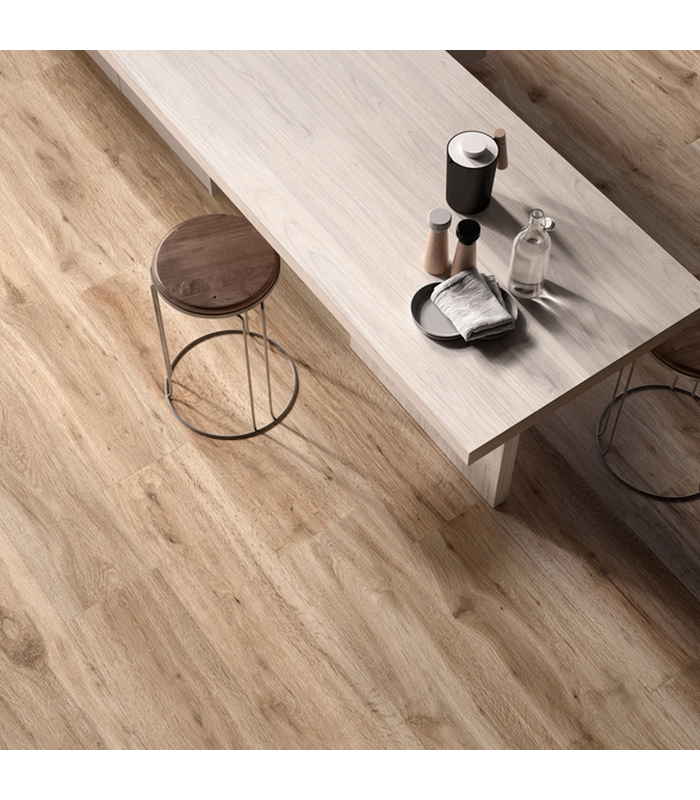 The Barkwood Honey collection by Sant Agostino reproduces the charming warmth of honey-colored wood planks with a smooth surface texture and detailed wood grain graphics. The tile is available in multiple plank sizes, including 30×180 cm and 20×120 cm, with a thickness of 9-10 mm and rectified edges for seamless installation. It offers excellent wear resistance (PEI 5) and slip resistance (R10), suitable for floors and walls in various settings including kitchens and bathrooms