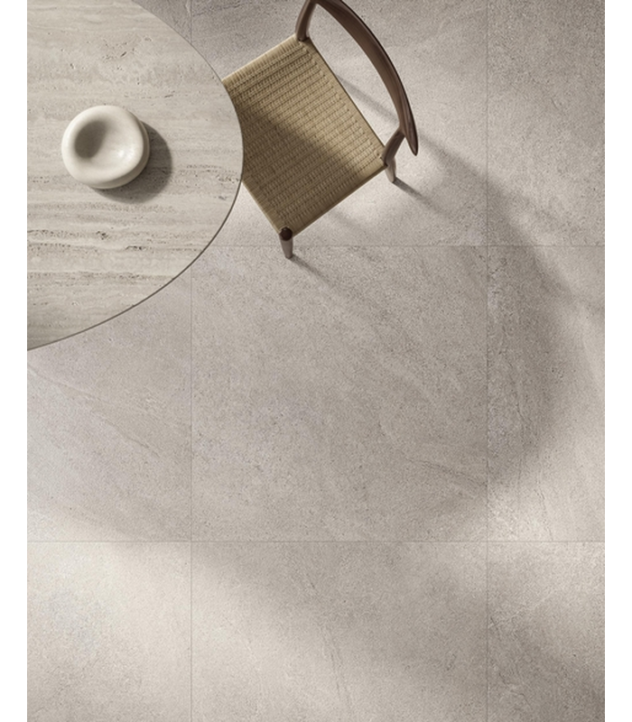 Bergstone Pearl is a matte finish porcelain stoneware tile in a light silver-beige tone, inspired by natural alpine stone. It offers durability and an authentic stone look with high slip resistance (R10), suitable for floors and walls in indoor spaces.