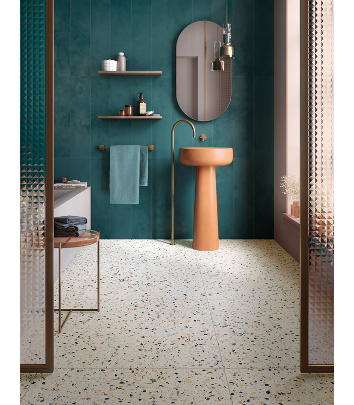 Ideal for creating grand, striking effects; they’re equally suitable for smaller spaces, offering versatility in terms of composition and material. Clay features the coated effect typical of resin, with a slightly shiny effect on a matt surface, in a palette of dense colours, both warm and cool, ranging from white through three different shades of grey, from greige to taupe, and three colours with a contemporary soul: cotto, mustard and petrol blue, suitable for bringing a touch of character to any setting.