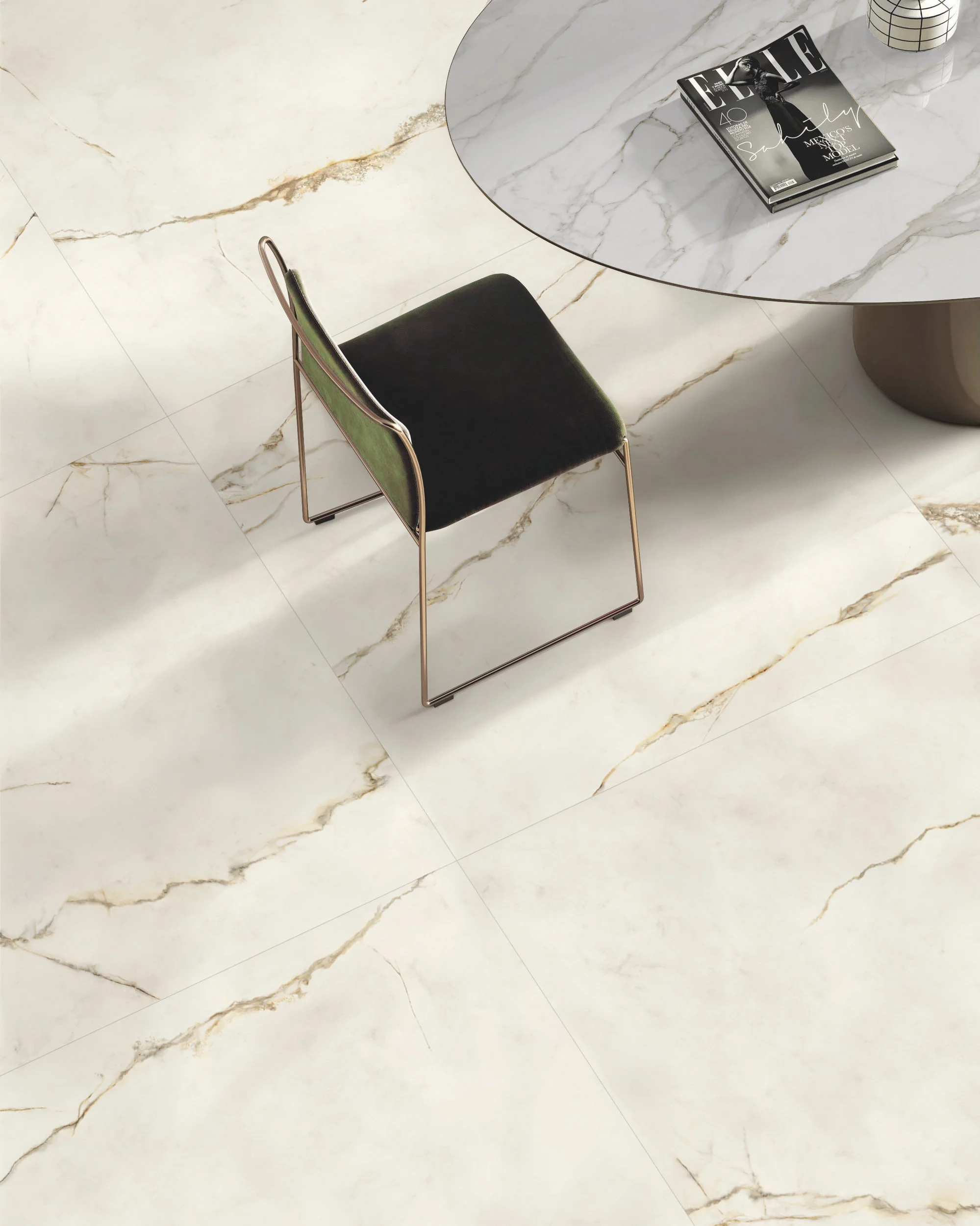 Energiker Dubai Gold is a porcelain stoneware tile collection that combines the purity of ivory marble with elegant golden veins flowing lightly over the surface. This creates a natural, harmonious, and luxurious design suitable for contemporary spaces.