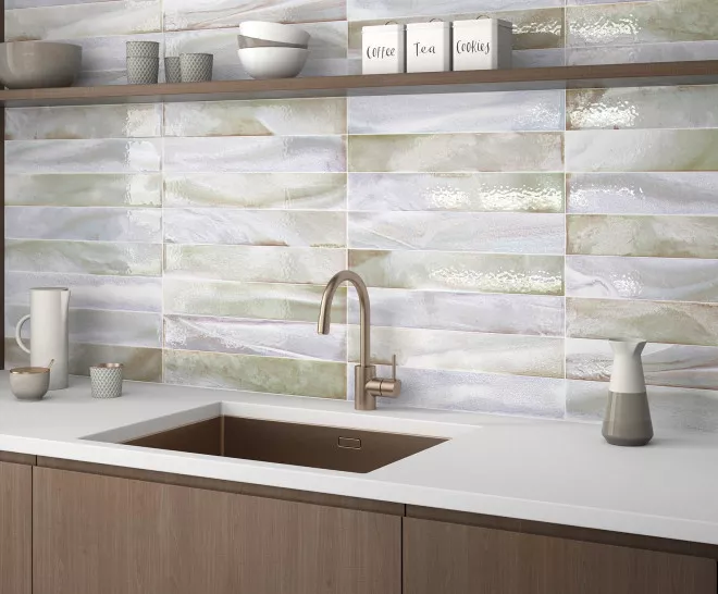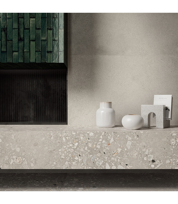 Era Collection: Inspired by traditional Mediterranean ceramics, it combines glossy and veined finishes to create a unique three-dimensional effect in shades of grey, green and cobalt.