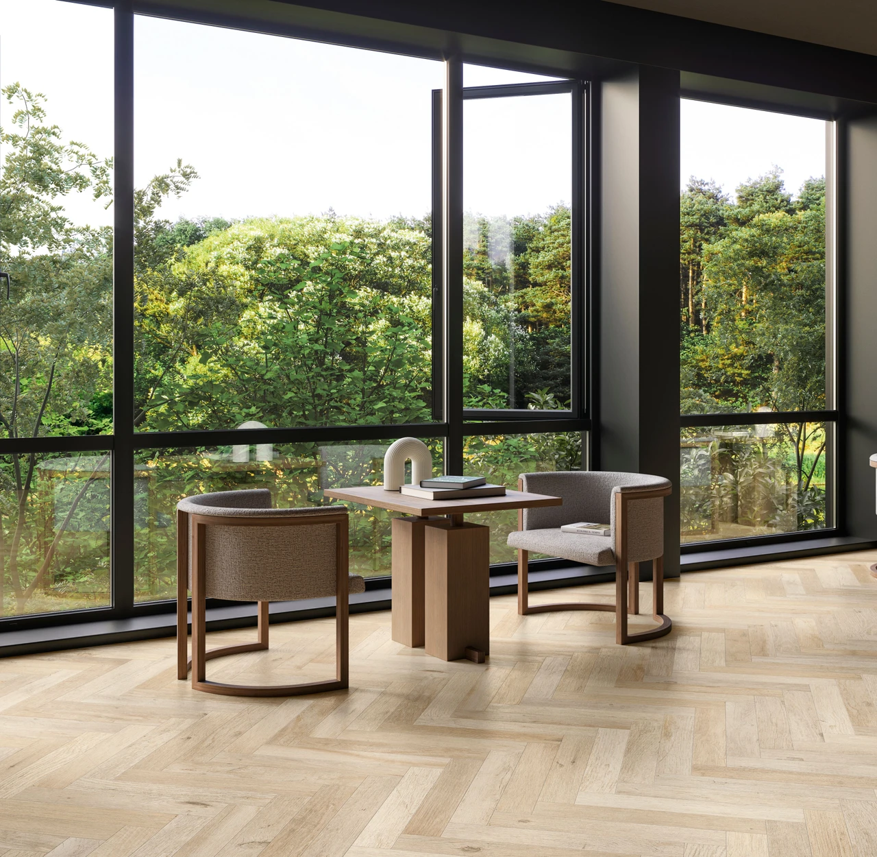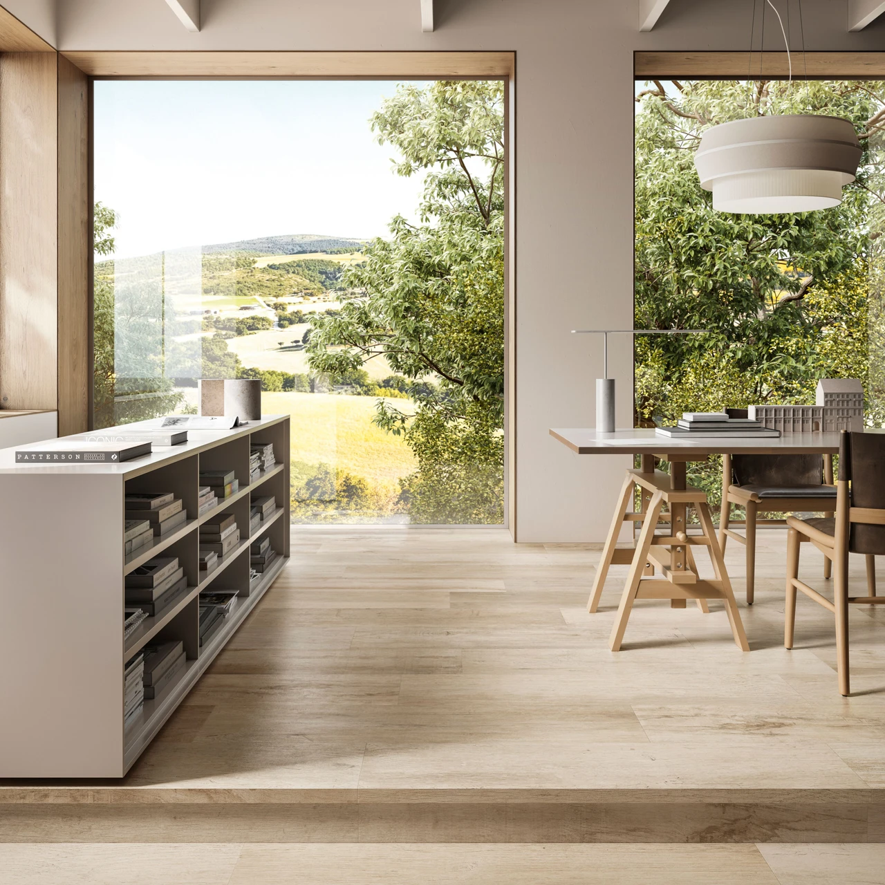 The Yorkwood collection captures the rustic elegance and rich character of English oak wood with a porcelain tile that mimics natural timber. Yorkwood Honey combines warm, sunlit tones and intricate wood grain patterns across 60 unique faces to ensure minimal pattern repetition. The tiles utilize advanced DigitalPlus high-definition printing and Carve3D technology for authentic visual depth and tactile realism. Featuring rectified edges, the tiles enable precise installation with minimal grout lines for a seamless wood floor effect. Durable and slip-resistant (R10 rating), Yorkwood Honey is ideal for both residential and commercial architectural spaces aiming for cozy, natural aesthetics with the practical benefits of porcelain tiles. The range has eco-certifications, underlining its sustainable manufacture.
