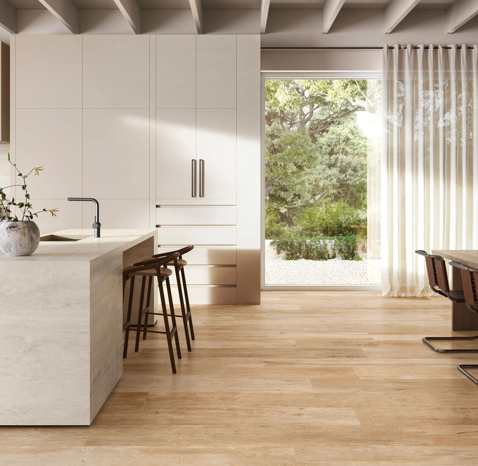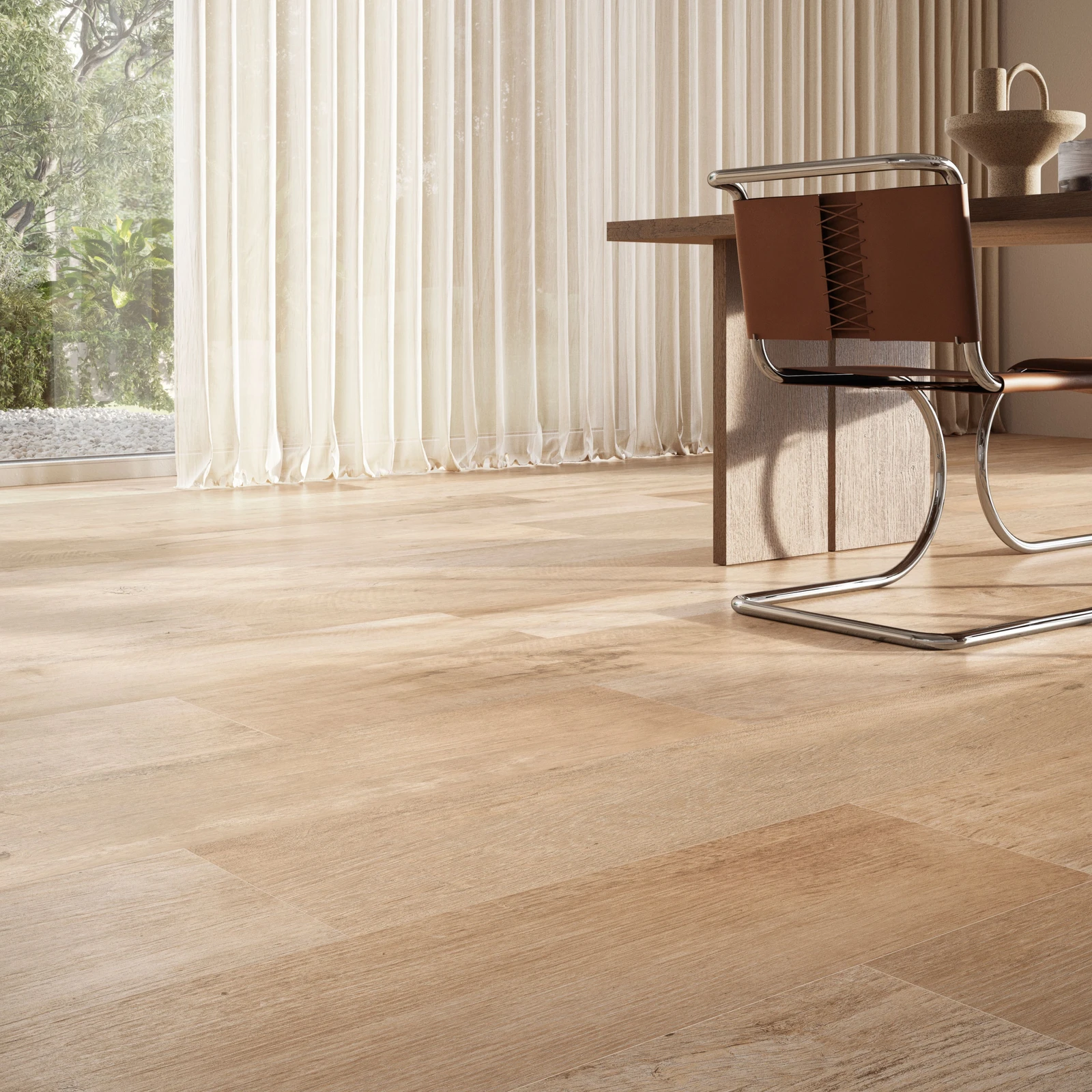 Yorkwood Natural is a wood-effect porcelain stoneware tile from Sant Agostino’s Yorkwood collection, showcasing the look of raw, unstained oak. It features soft wood grains and natural imperfections with a matte finish, available in sizes such as 30×120 cm and large planks like 300×1800 mm (12″x72″) with 9 mm thickness. Suitable for floors and walls indoors, it offers a natural, rustic yet elegant timber appearance.