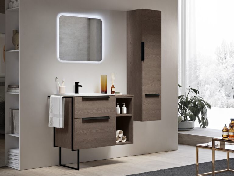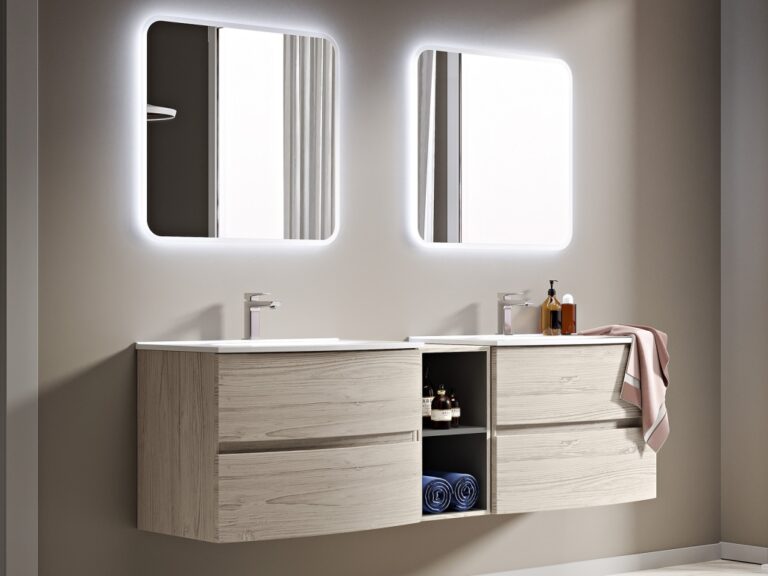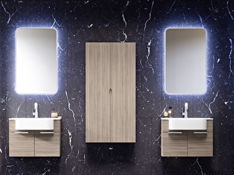 The Premium Collection also includes backlit mirrors equipped with touch system for switching on and off, dimmable, both rectangular and oval, in multiple sizes combined with metal grids for the installation of shelves on multiple heights: a Collection with new aesthetic details and functional for a daily routine that does not give up on style.